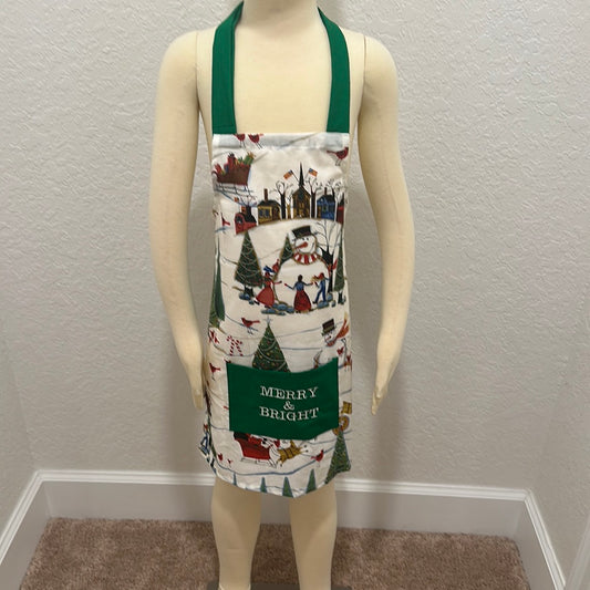 “Merry & Bright” Kids Christmas Embroidered Apron